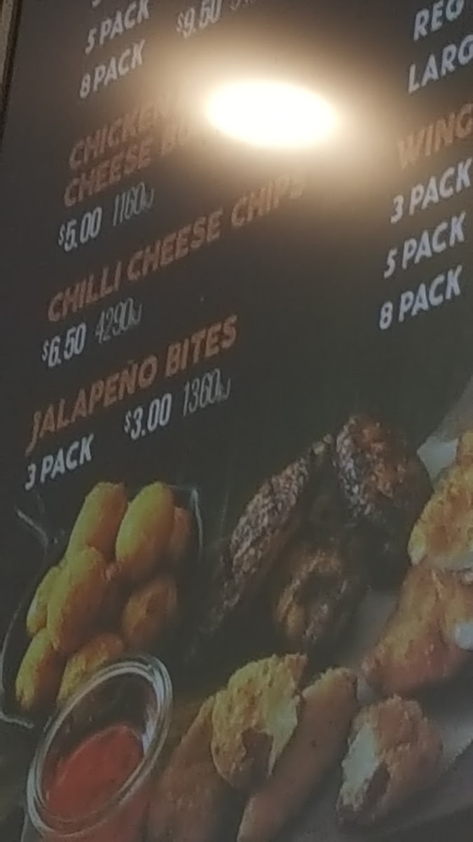 Choose from our heavenly Jalapeño Bites, Spicy Chicken Bolas or Crispy Wings together with our famous hot chips. (564 kJ).